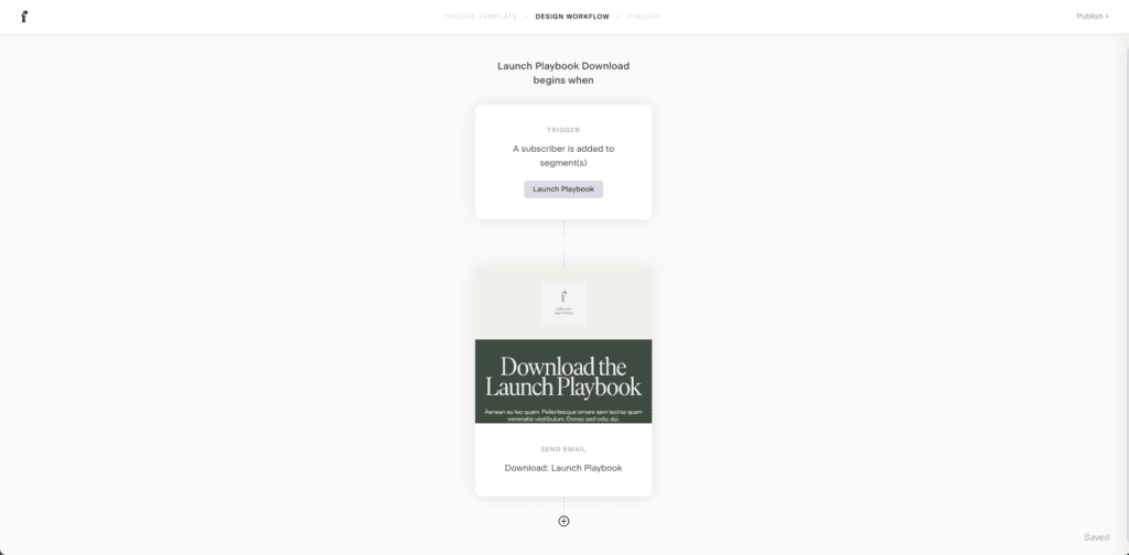 Flodesk has a ton of great sequences (a.k.a. Pre-designed workflow structures) but we typically start from scratch (especially if it’s a simple one email sequence).