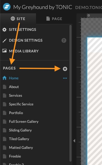 Now that you added the designs to your Showit Library, we can add one of the coming soon page designs to your website. On the left hand side of Showit, click on the “SITE” tab to see a list of all of your website pages.