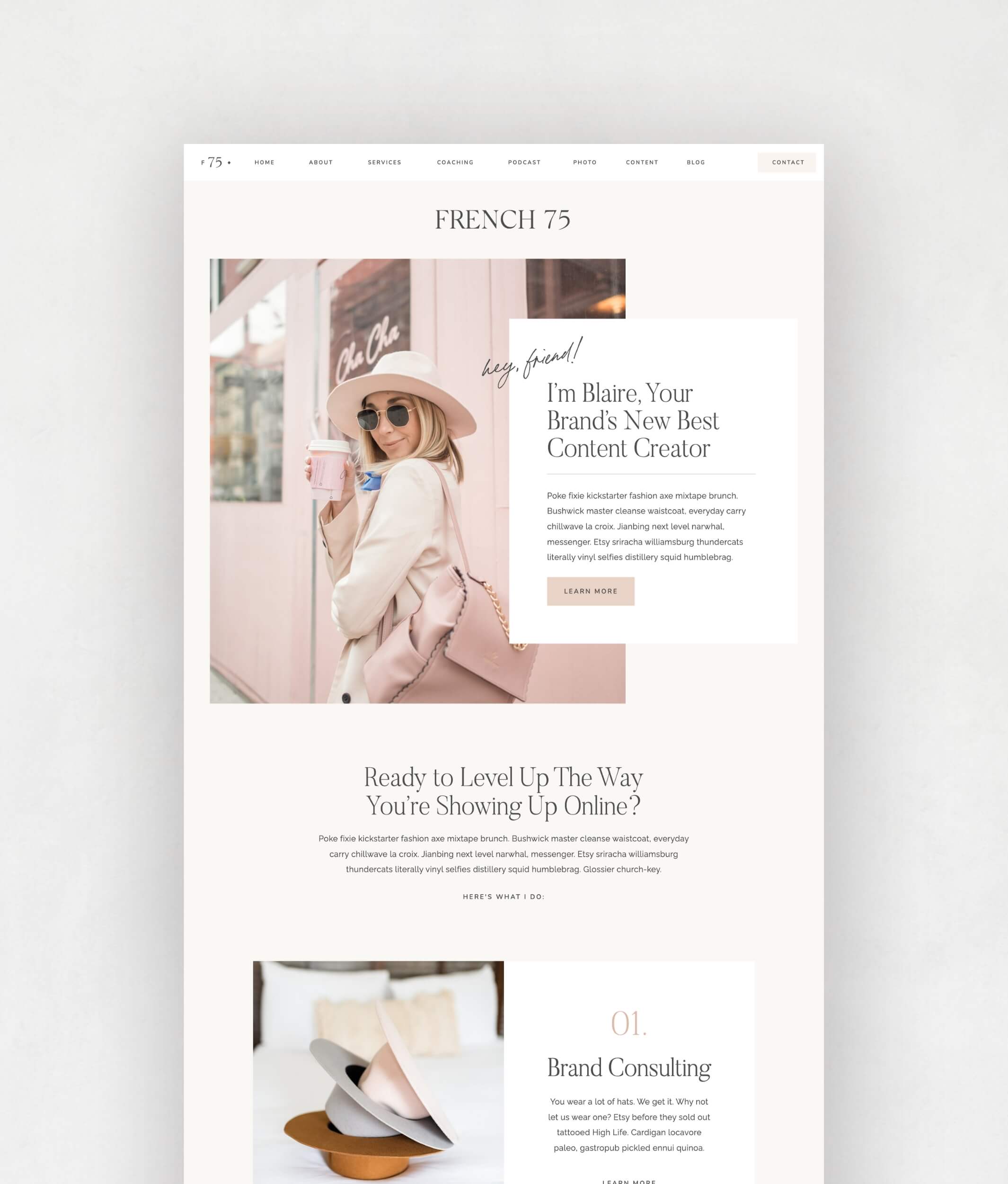 Beauty and grace, sheโs all class and feminine strength. Our French 75 template is perfect for any coach, podcaster, creative brand, or small business.