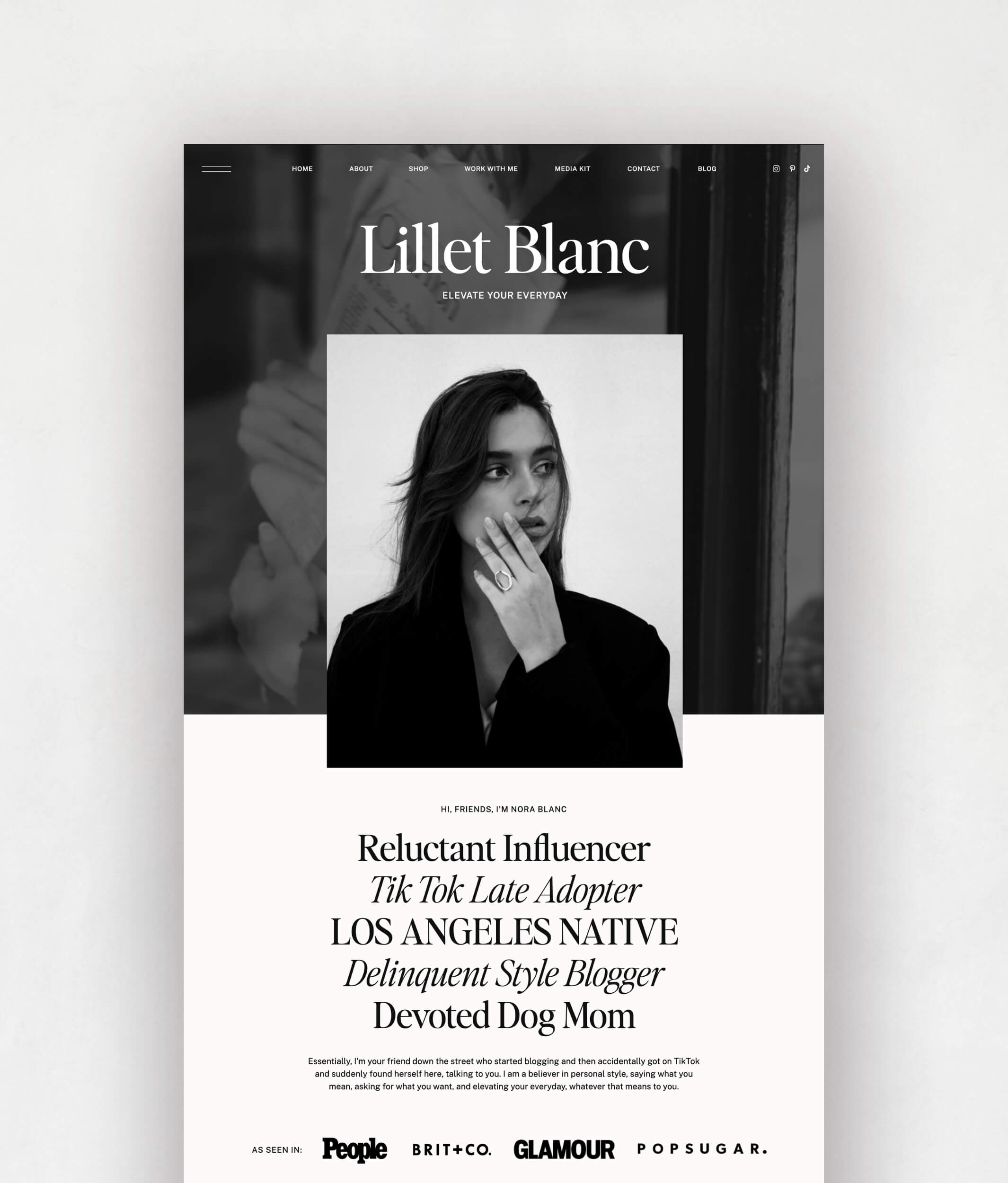 Ripped from the pages of fashion magazines, Lillet Blancโ€™s giving major cool-girl vibes + typographic, editorial design. Big-impact typography, clean tones, black & white, and OMG moments throughout the designโ€“ sheโ€™s the perfect template for influencers, style bloggers, and anyone that needs an online space thatโ€™s as cool as they are.