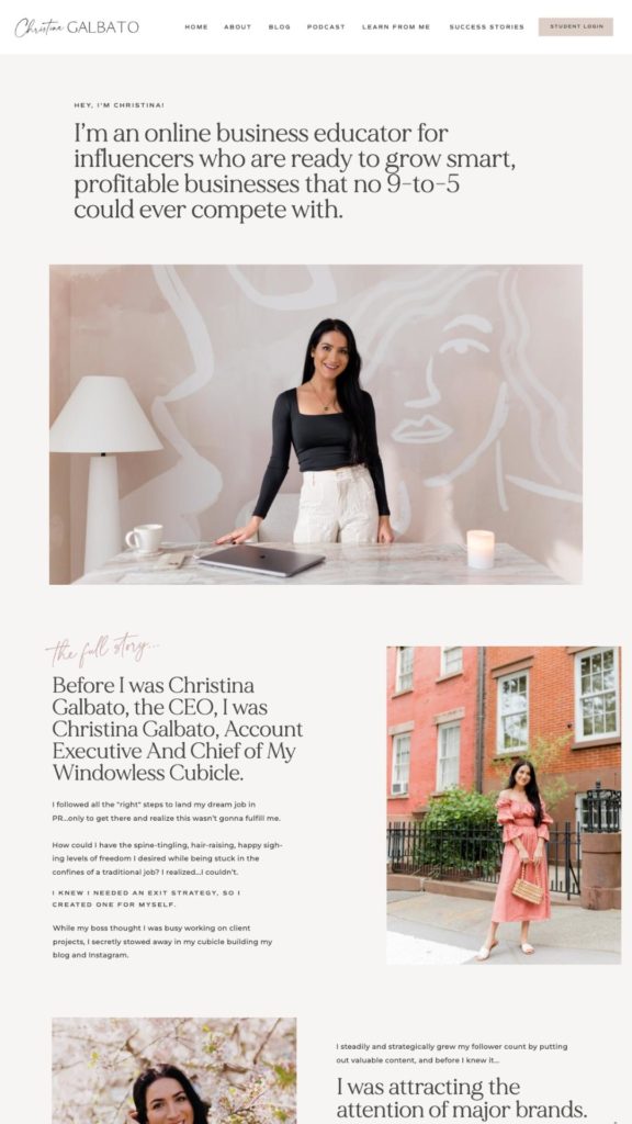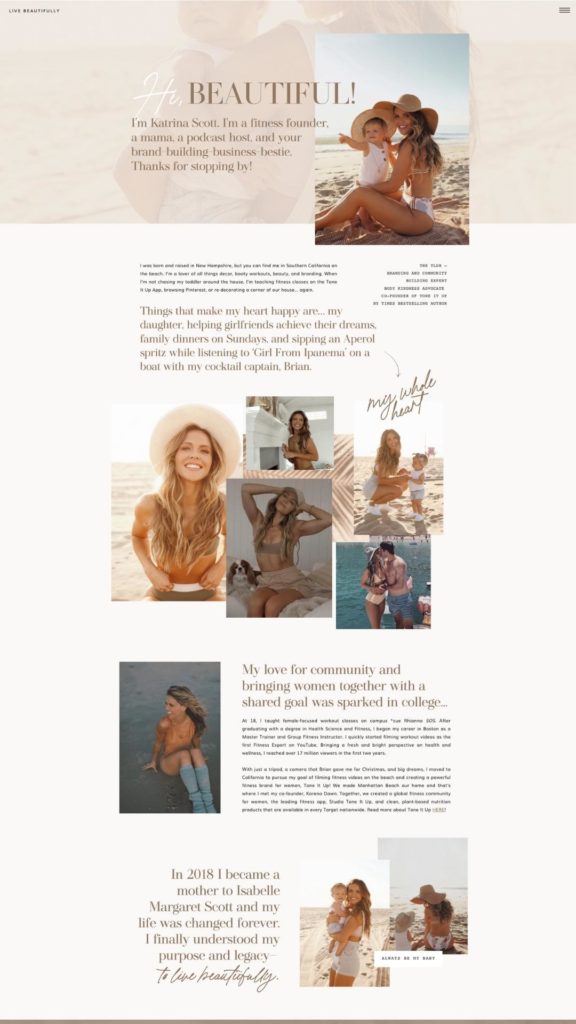 Speaking of what’s different…you didn’t just get here! Find a way to create a narrative that draws your reader into the story behind your business and brand. It didn’t just happen overnight. There were dreams, goals, failures, successes, big (and small) breaks and breakthroughs that got you where you are, and are taking you where you want to go. So the lines of copy in your About section should outline your story. Check out our Margarita About Page template for inspiration.