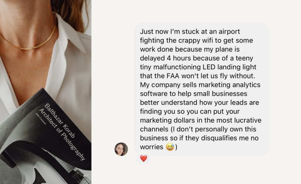I’d been painfully tired of all the typical salesy, impersonal stuff, and decided to try something different—aka writing what I actually *wanted* to write about—and when my audience loved it (to my utter surprise, given how mundane it was) I knew I’d tapped into my ability to transform anything into a solid piece of content marketing.