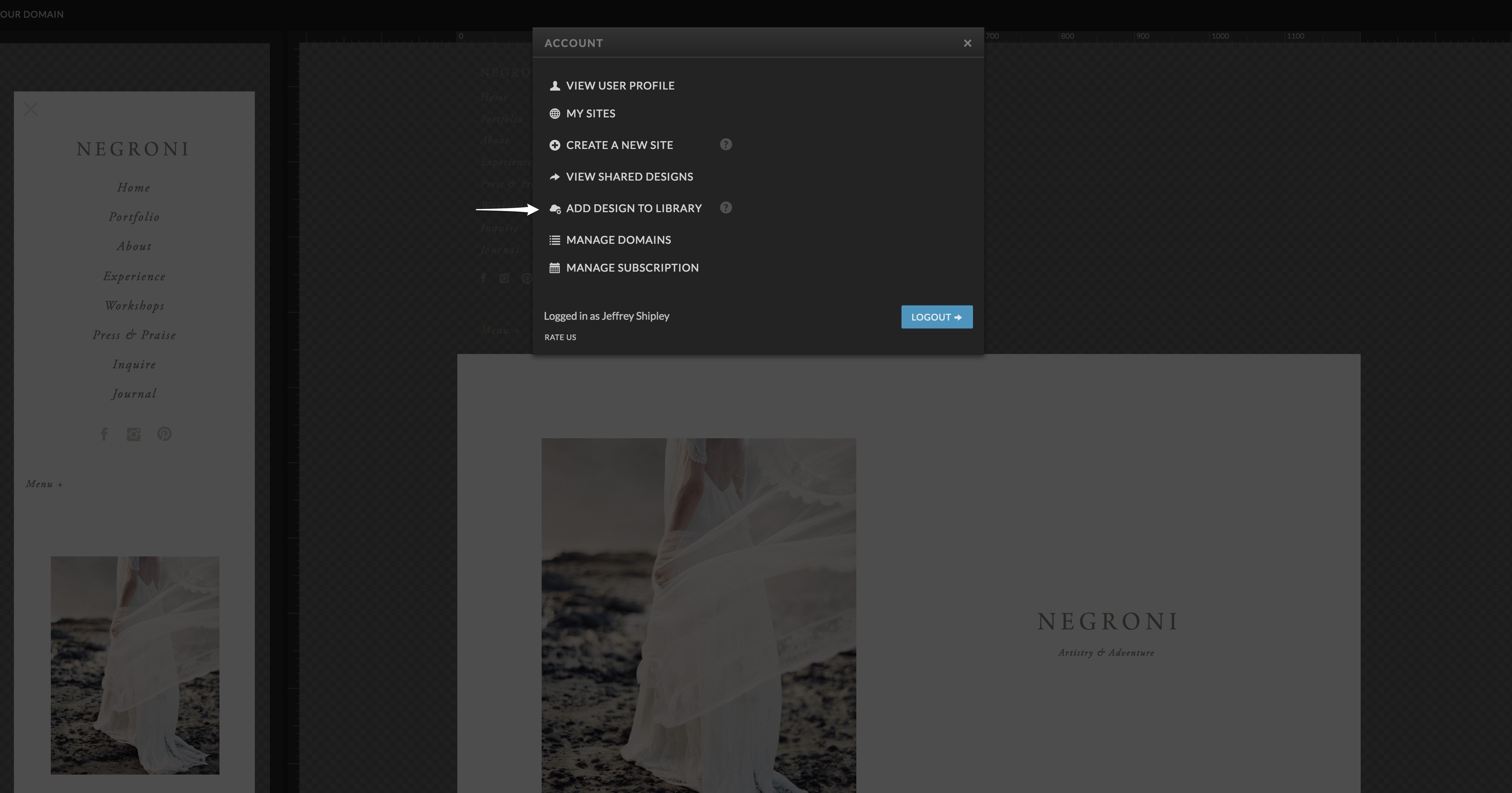 First up, you’ll need to install our handy Shop Add-On Page into your Showit Library. To do so, copy the sharekey from your download file to your clipboard, add new design to library, and paste the sharekey.