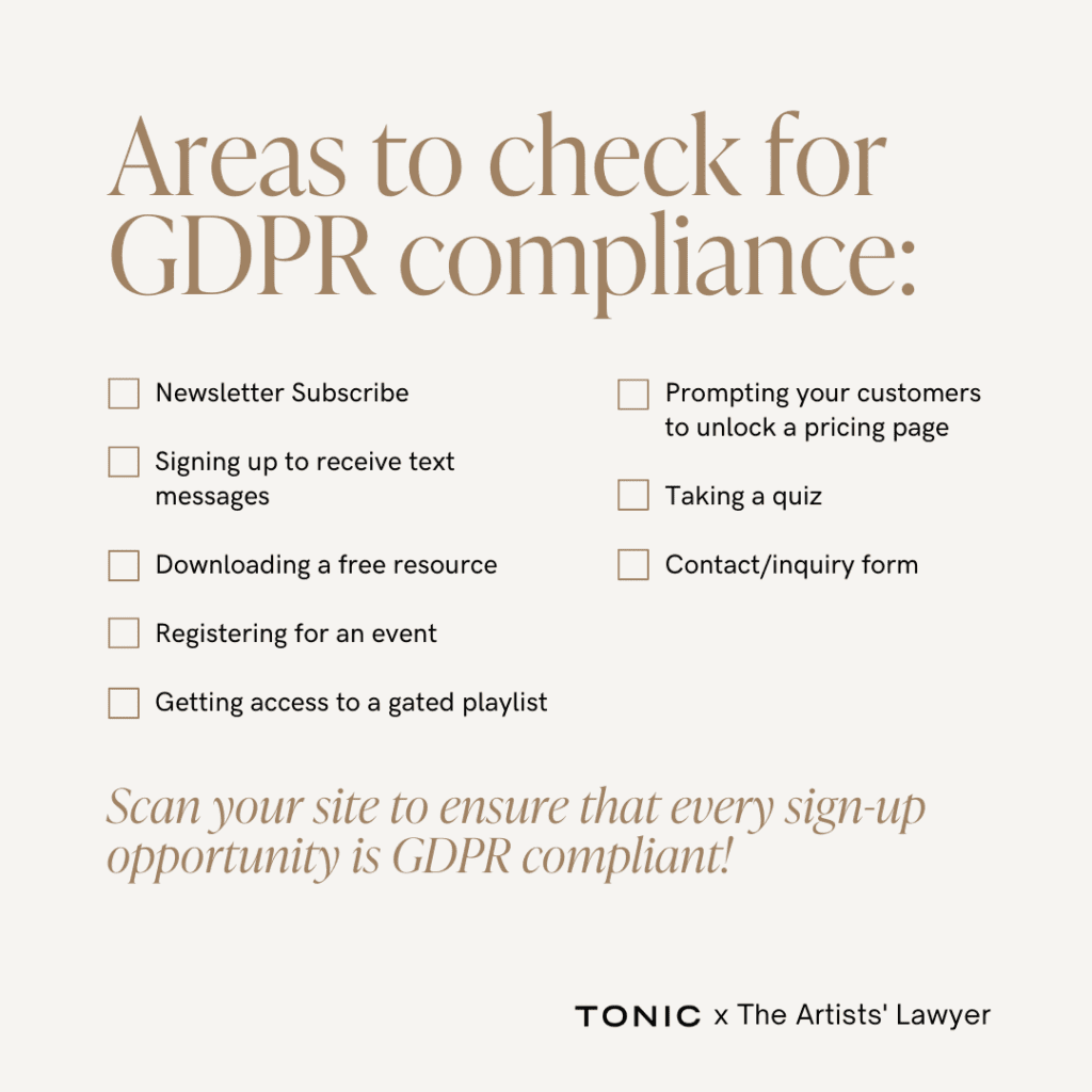 Here are a few examples of areas on your site to check for GDPR compliance →