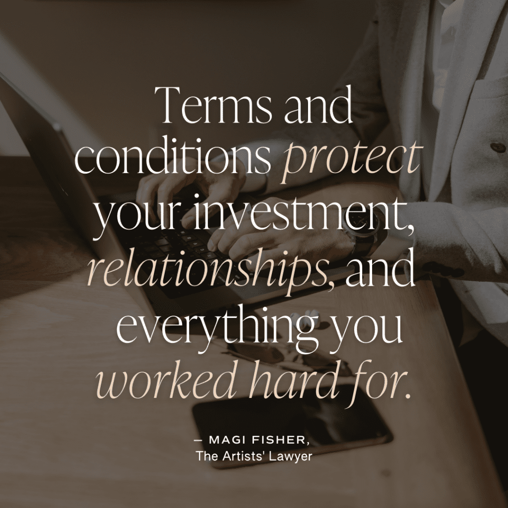 In short, it’s your responsibility as a creative business owner to make sure that you, your brand, and your customers are legally protected in all ways. Don’t wait until it’s time to sign an agreement to put necessary protection in place — your legal relationship with your customers starts the first time they land on your website!