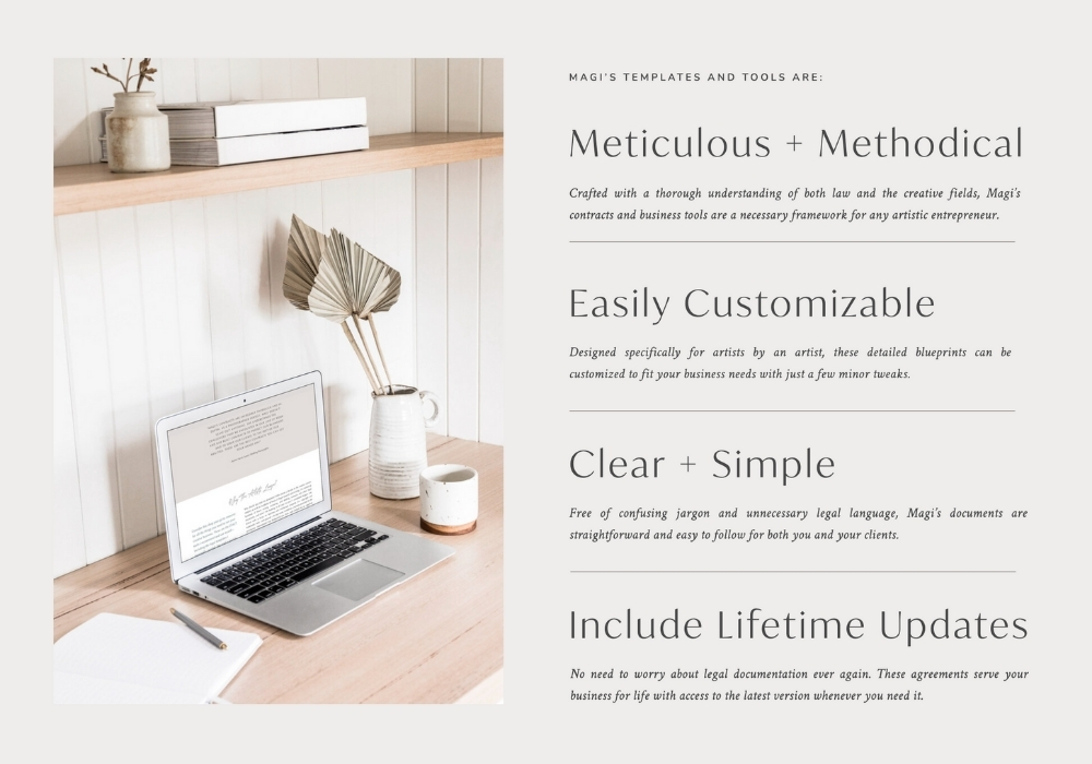 Think about it like Legos of design that you can move around and build your own page or add to others. We’ve seen lots of creative and unique uses for pieces of our sales pages, too. The Artists’ Lawyer used elements of our Margarita sales page template in both her Services and Shop pages to create incredibly customized, high-impact pages that work for her in distinct ways.